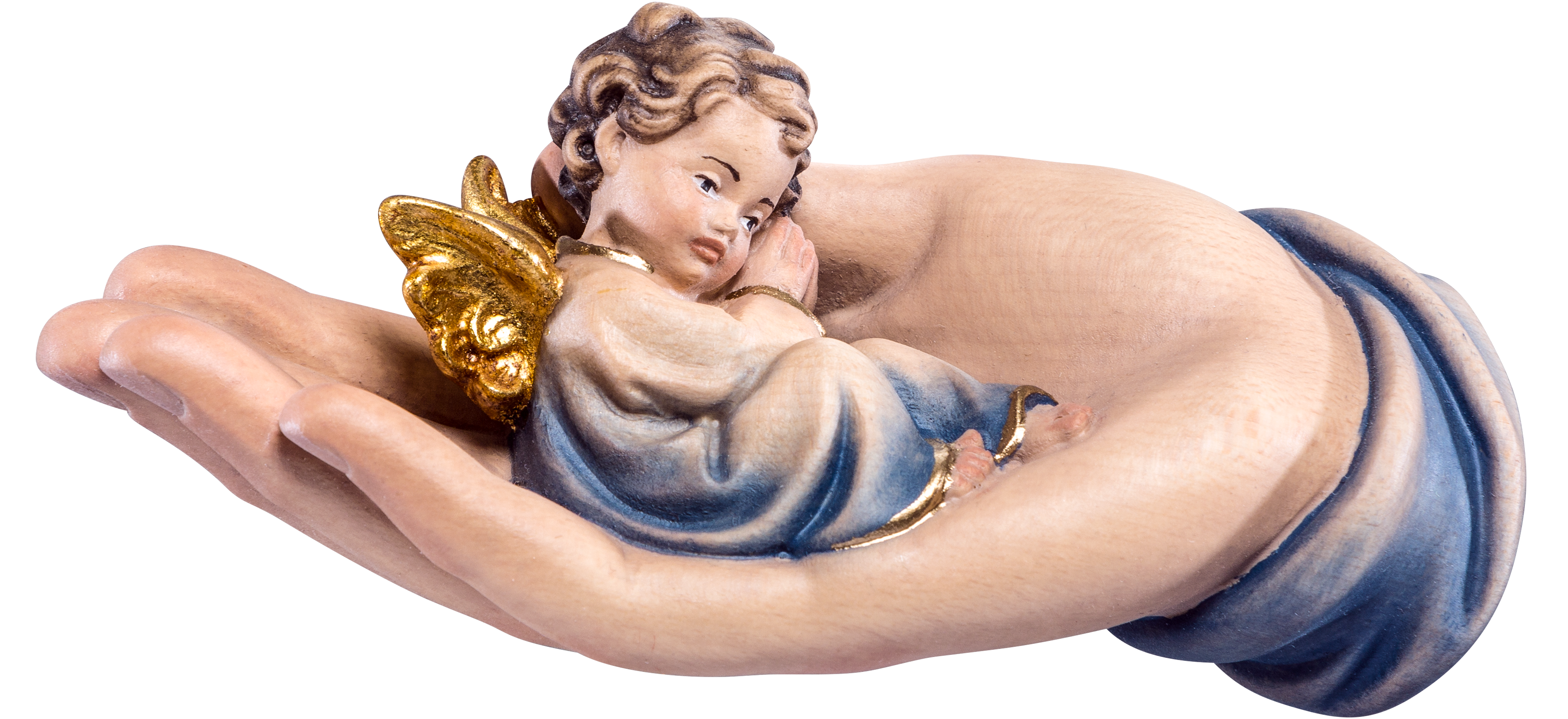 Schützende Hand liegend mit Engel blau