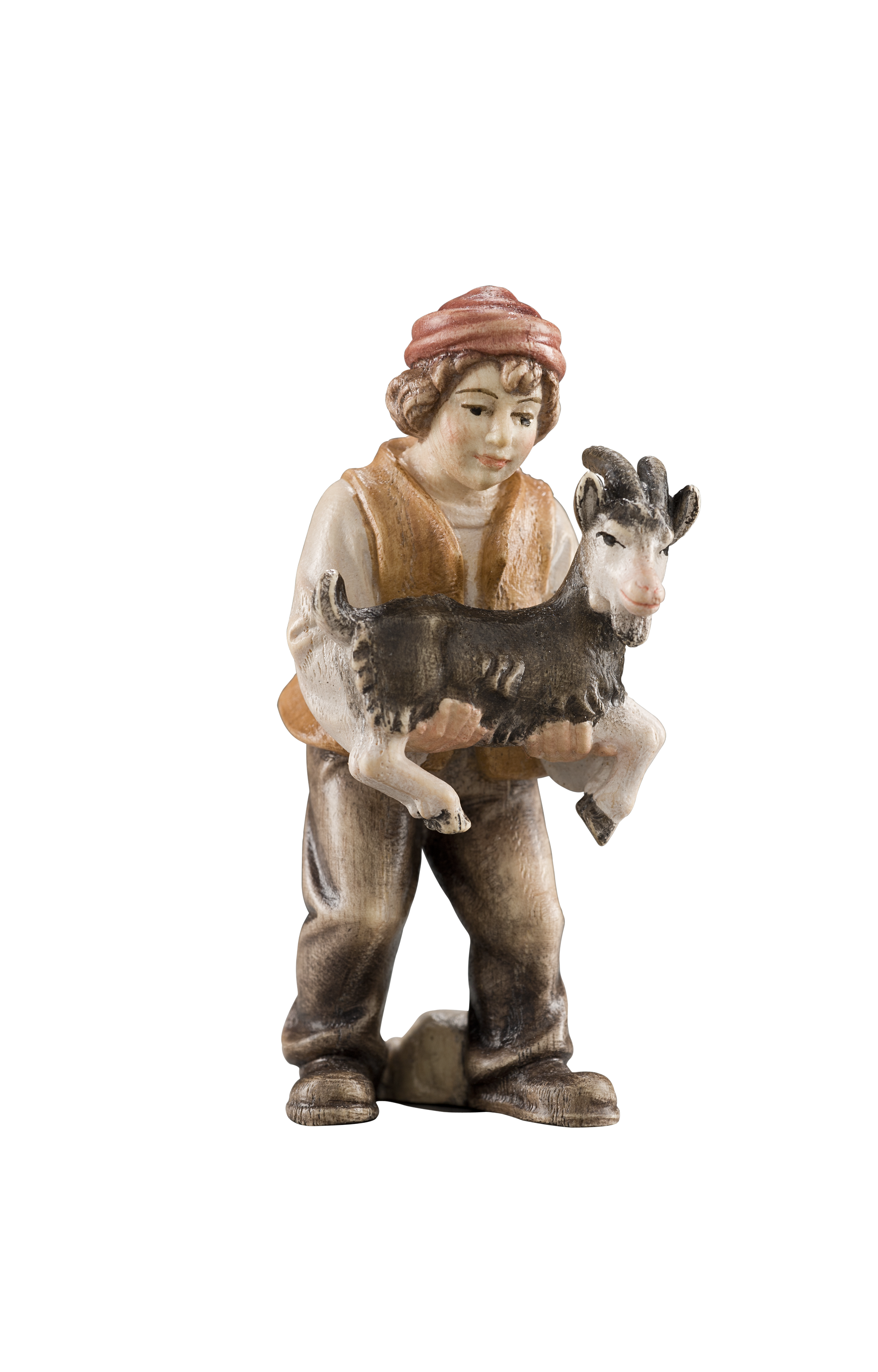 Advent Krippe Bub mit Ziege im Arm
