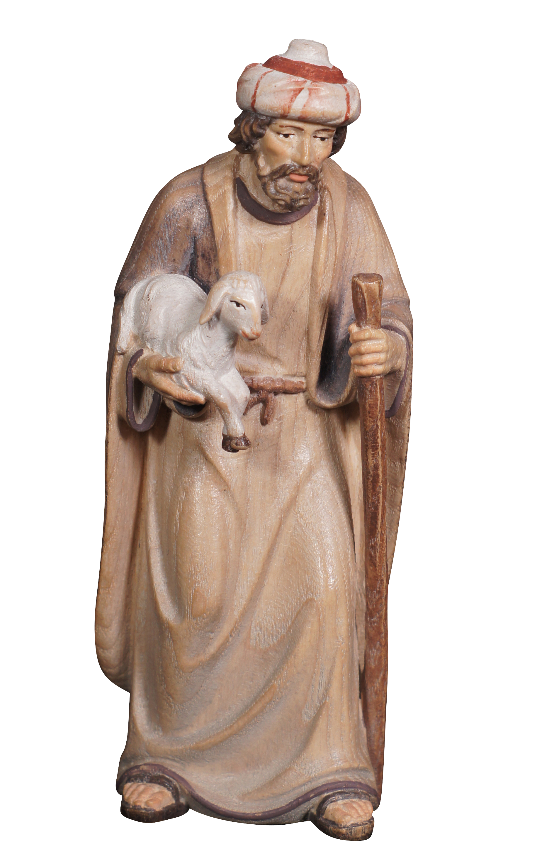 Advent Krippe Hirt mit Stock-Lamm im Arm