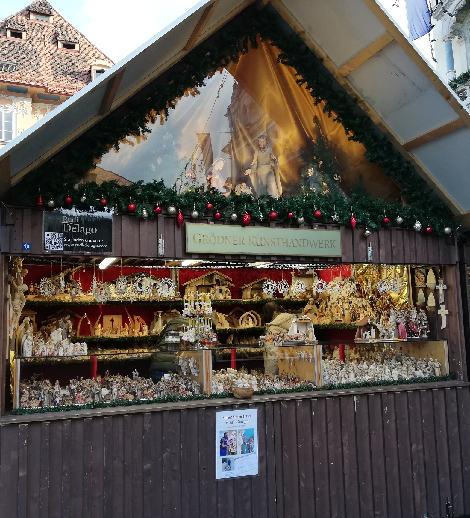 Der Meraner Weihnachtsmarkt ist einer der beliebtesten Weihnachtsmärkte Südtirols. In der Weihnachtszeit verwandelt sich die Kurstadt zu einem romantischen Ort. Der Stand Nr.28 von Delago Rudi mit den Original Grödner Holzschnitzereien trägt dazu bei, Ihren Besuch auf den Meraner Weihnachtsmarkt unvergesslich zu machen.